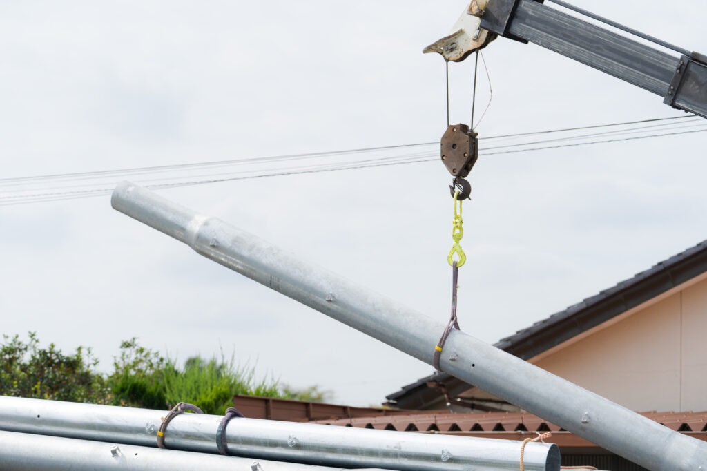 建柱工事とは、電気や通信インフラを支えるために必要な電柱を新設・建替・改修する工事です。私たちは、穴掘り建柱車などの特殊車両を駆使し、安全かつ効率的に作業を行います。電力会社や通信会社所有の電柱から、建物への引込柱、携帯基地局まで、幅広く対応しております。現代社会に不可欠な電気や通信網を支えるため、信頼性の高い建柱作業を通じて、地域の生活を支え続けます。